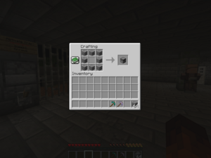 Opens a 3x3 [https://minecraft.wiki/w/Crafting crafting] interface. | Opens a 3x3 [https://minecraft.wiki/w/Crafting crafting] interface. | ||